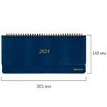 Планинг датированный 2024 305х140 мм, BRAUBERG "Iguana", под кожу, синий, 114810