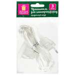 Удлинитель для электрогирлянд 3 м, прозрачный шнур, пакет, ЗОЛОТАЯ СКАЗКА, 591712