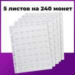 Листы-вкладыши для монет для альбома "Оптима" М9-05, комплект 5 шт., 200х250 мм, 48 карманов, ЛМ-48