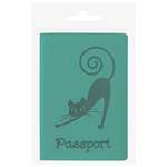 Обложка для паспорта STAFF, мягкий полиуретан, "Кошка", бирюзовая, 237616