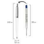 Ручка шариковая PARKER "Jotter Plastic CT", корпус белый, детали из нержавеющей стали, синяя, R0032930