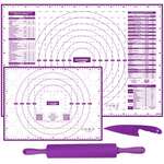 Коврик силиконовый для раскатки/запекания 46х66 см, фиолетовый, ПОДАРОК пластиковый нож, DASWERK, 608427