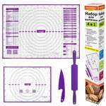Коврики силиконовые для выпечки 4 в 1: Коврики 30х40 см / 46х66 см, Нож 24 см, Скалка, DASWERK, 608429