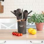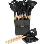 Набор силиконовых кухонных принадлежностей с деревянными ручками 13 в 1, черный, DASWERK, 608197