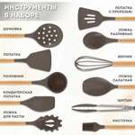 Набор силиконовых кухонных принадлежностей с деревянными ручками 12 в 1, серо-коричневый, DASWERK, 608195