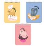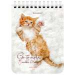Блокнот МАЛЫЙ ФОРМАТ А6 108х145 мм, 40 л., гребень, картон, клетка, BRAUBERG, "Милые котята", 114391