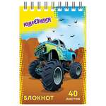 Блокнот МАЛЫЙ ФОРМАТ А7 75х105 мм, 40 л., гребень, картон, клетка, ЮНЛАНДИЯ, "МОНСТР-ТРАК"/"ФУТБОЛ", 129859