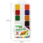 Краски акварельные BRAUBERG KIDS, медовые, 12 цветов, квадратные кюветы, пластиковый пенал, 192282
