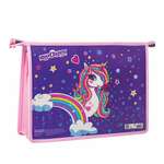 Папка для тетрадей ЮНЛАНДИЯ А4, 1 отделение, пластик, молния сверху, "Rainbow unicorn", 228146