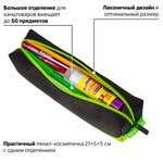 Пенал-косметичка BRAUBERG, мягкий, "Black&Bright", черно-зеленый, 21х5х5 см, 229005