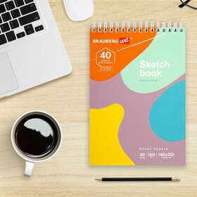 Изделие имеет размер 140х201 мм и содержит 40 белоснежных листов плотностью 160 г/м2 с гладкой текстурой. Листы удобно скреплены спиралью, что позволяет переворачивать их на 180 градусов. Твердая подложка позволяет делать зарисовки и наброски на весу. Бумага не "съедает" цвет, оставляя яркие цвета неизменными. Прекрасным дополнением является стильная красочная обложка из мелованного картона.