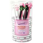 Ручка с топпером шариковая ЮНЛАНДИЯ "Кошка", корпус ассорти, СИНЯЯ, пишущий узел 0,7 мм, 143804
