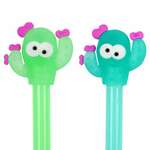 Ручка с топпером шариковая ЮНЛАНДИЯ "Цветущий кактус", корпус ассорти, СИНЯЯ, пишущий узел 0,7 мм, 143781