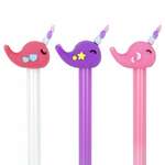 Ручка с топпером шариковая ЮНЛАНДИЯ "Кит-Единорог", корпус ассорти, СИНЯЯ, пишущий узел 0,7 мм, 143783