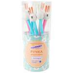 Ручка с топпером шариковая ЮНЛАНДИЯ "Ушастый зайка", корпус ассорти, СИНЯЯ, пишущий узел 0,7 мм, 143782