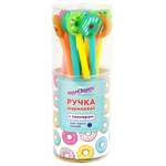 Ручка с топпером шариковая ЮНЛАНДИЯ "Пончик", корпус ассорти, СИНЯЯ, пишущий узел 0,7 мм, 143799