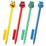 Ручка с топпером шариковая ЮНЛАНДИЯ "Монстрик", корпус ассорти, СИНЯЯ, пишущий узел 0,7 мм, 143798