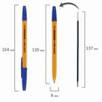 Ручка шариковая STAFF "Basic Orange BP-01", письмо 750 метров, СИНЯЯ, длина корпуса 14 см, узел 1 мм, 143740