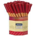 Ручка шариковая масляная PENSAN "Officepen 1010", КРАСНАЯ, корпус оранжевый, узел 1 мм, линия письма 0,8 мм, 1010/60