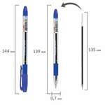 Ручка шариковая масляная с грипом STAFF "OBP-279", СИНЯЯ, игольчатый узел 0,7 мм, линия письма 0,35 мм, 142988