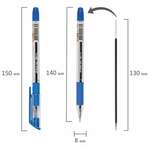 Ручка шариковая масляная с грипом STAFF "College OBP-251", СИНЯЯ, корпус прозрачный, линия письма 0,35 мм, 142968