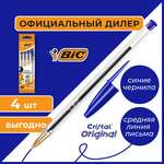 Ручки шариковые BIC "Cristal Original", НАБОР 4 шт., СИНИЕ, узел 1 мм, линия 0,32 мм, пакет, 8308601