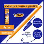 Ручки шариковые BIC "Orange Original Fine", НАБОР 4 шт., СИНИЕ, узел 0,8 мм, линия письма 0,3 мм, пакет, 8308521