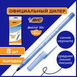Ручки шариковые BIC "Round Stic", НАБОР 8 шт., СИНИЕ, узел 1 мм, линия письма 0,32 мм, пакет, 928497