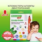 Фломастеры-штампы двусторонние ГАММА "Малыш", 8 цветов, смываемые, утолщенные, картонная упаковка, подвес, 180319_02