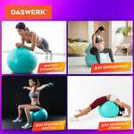 Мяч гимнастический (фитбол) 65 см с эффектом "антивзрыв", с ручным насосом, бирюзовый, DASWERK, 680015