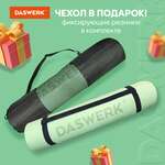 Коврик для йоги и фитнеса спортивный двухцветный, ТПЭ, 183x61x0,6 см, светло-зеленый/чёрный, DASWERK, 680031