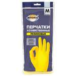 Перчатки хозяйственные латексные AVIORA, МНОГОРАЗОВЫЕ, хлопчатобумажное напыление, размер M (средний), 402-567