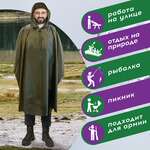Дождевик пончо хаки на кнопках многоразовый с ПВХ покрытием и мешком для хранения ГРАНДМАСТЕР, 610882